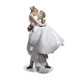 Lladró's subject matter also features idyllic moments shared between men and women, and a beautiful example of this is the figurine entitled "Happiest Day. " This piece is a tribute to that special moment when the groom holds his bride in his arms on their wedding day. A marvelous piece, "Happiest Day" depicts the memories of a once-in-a-lifetime moment through the wedding clothes of the bride and groom. What makes this figurine so special are the minute details in the bride's pearl necklace, her earrings and the decoration of her dress that perfectly mimics embroidery. One of the supports for the piece is the train of the bride's gown, a clever and unique feature.